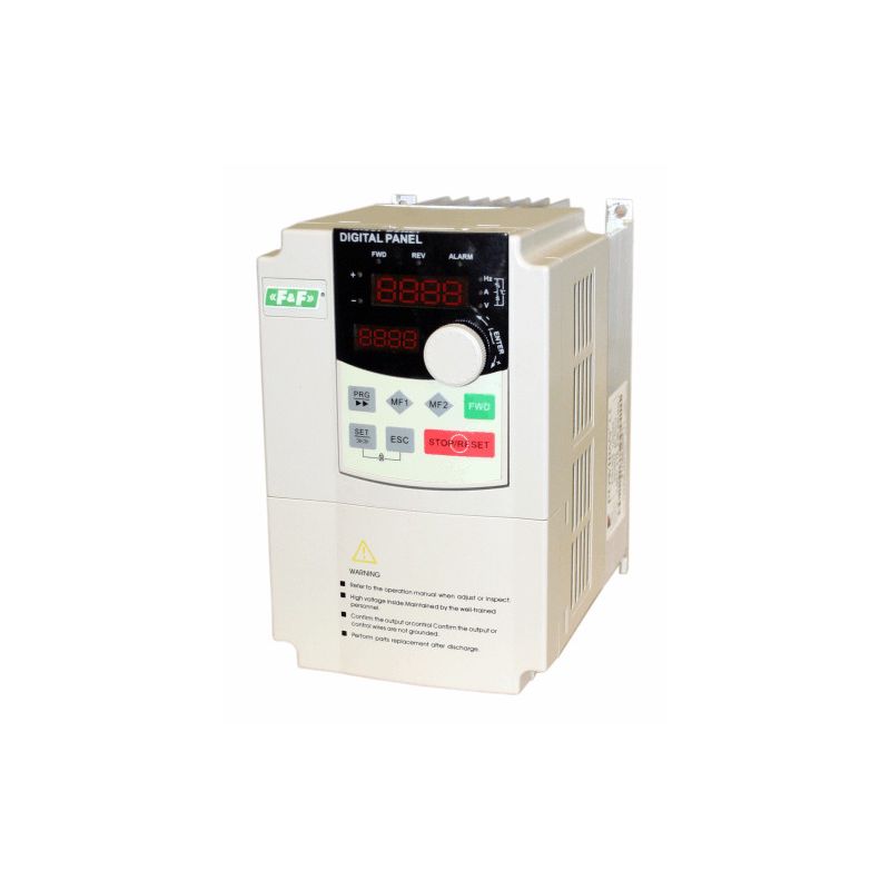 Najistotniejsze funkcje * Konstrukcja falownika oparta o wydajny 32-bitowy procesor DSP zapewnia szybką i efektywną realizację zaawansowanych algorytmów sterowania asynchronicznym silnikiem trójfazowym * Możliwość pracy w trybie sterowania prędkością lub w trybie kontroli momentu napędowego * Sterowanie silnikiem oparte o sterowanie wektorowe (zarówno bezczujnikowe jak i z pętlą prędkościowego sprzężenia zwrotnego), oraz sterowanie w oparciu o swobodnie programowane charakterystyki V/F. * Funkcja automatycznej kompensacji poślizgu, oraz duży początkowy moment napędowy (nawet do 180% przy częstotliwości 0.25Hz). * Wielofunkcyjny panel sterowniczy podłączany do falownika na zasadzie „hot-plug” z możliwością jednoczesnego przechowywania do czterech kompletów nastaw parametrów i funkcją łatwego przenoszenia nastaw z jednego falownika do drugiego * Tryb PLC – możliwość zaprogramowania do siedmiu kroków realizowanych jednorazowo lub cyklicznie przez falownik. Dla każdego z kroków można określić prędkość, czas przyspieszania oraz czas trwania. * Duża swoboda programowania wejść i wyjść falownika, zarówno analogowych jak i cyfrowych. * Wbudowany moduł komunikacyjny RS485 wspierający protokół Modbus RTU umożliwia wpięcie falownika do sieci przemysłowych i zdalne sterowanie, nadzór i konfigurację pracy falownika.